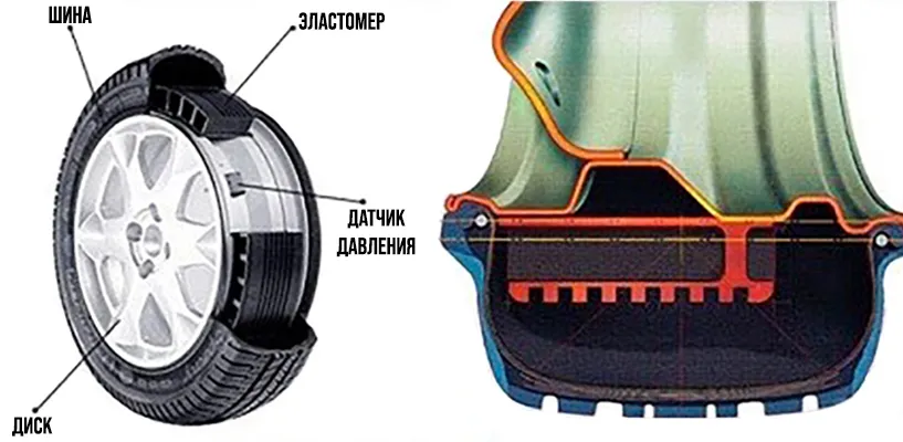 Как известно, обычная шина удерживается за счет внутреннего давления воздуха. В системах РАХ скат размещается в специальном углублении на диске, а для прижима задействуется бортовое кольцо. Такой подход обеспечивает высокую плотность прилегания шины и диска даже при условии полного выхода воздуха: как следствие, автомобилю разрешается перемещаться со скоростью до 80 км/ч. Функция опорного кольца сводится к созданию барьера против сжимания и потери рабочей формы колесом на фоне падения внутреннего давления. Наличие встроенной системы контроля в шинах дает возможность с заданной цикличностью производить замеры уровня давления и температуры воздуха во всех колесах. Полученная информация поступает на приборную панель, где происходит ее анализ: при фиксации неисправности срабатывает система сигнализации. PAX System обеспечивает безопасное перемещение машины на одном или нескольких пробитых колесах со скоростью 80 км/ч на расстояние до 200 км.