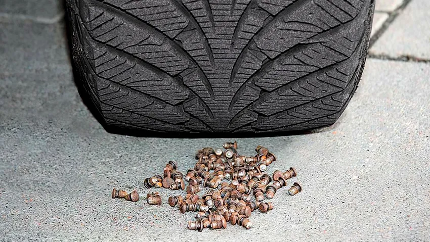 Часто автомобилисты пренебрегают правилами безопасной езды и сознательно наезжают на рельсы, по которым ходит трамвай. При соприкосновении шипов с металлом, происходит выпадение детали из покрышки и посадочное место остается голым. Чтобы ездить безопасно, стоит задуматься об этом факте, иначе могут быть тяжелые последствия.