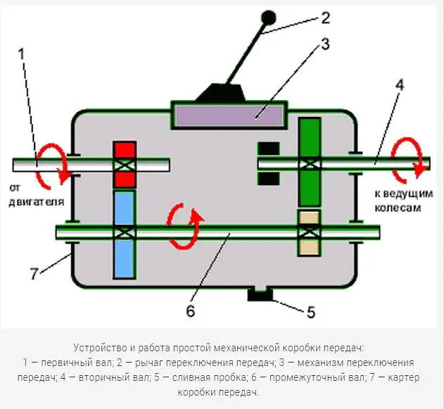 Устройство МКПП является довольно простым и включает в себя следующие элементы: