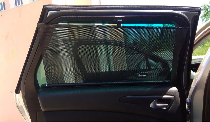 Это довольно доступный и, к тому же, эффективный способ. Подобные шторки изготавливаются из специального материала сетчатой структуры, который уменьшает нагревание салона на солнце, но не стоит забывать, что в соответствии с законодательством такой способ борьбы с излишним солнечным освещением приравнивается к обычной тонировке. Во избежание получения штрафа необходимо выбрать, либо разрешённый уровень проницаемости света, либо снимать шторки в процессе движения.